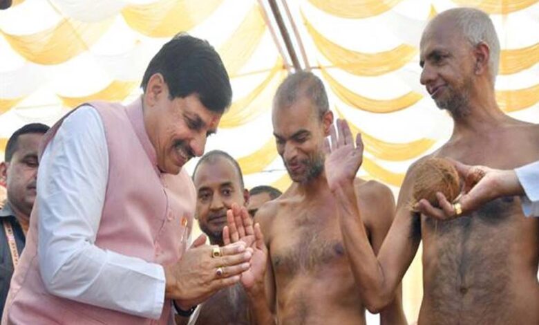 मुख्यमंत्री डॉ. मोहन यादव ने महावीर जयंती पर श्रमण मुनि 108 संभव सागर जी महाराज का आशीर्वाद प्राप्त किया। मुख्यमंत्री डॉ. यादव ने भोपाल के दिगंबर एवं श्वेतांबर जैन समाज द्वारा संयुक्त तत्वावधान में निकाली जा रही भगवान महावीर स्वामी की शोभायात्रा का इतवारा पहुंचकर स्वागत कर यात्रा में शामिल हुए। मुख्यमंत्री डॉ. यादव ने मुनि 108 संभव सागर जी महाराज सहित अन्य मुनिगण को श्रीफल भेंट कर उनका अभिवादन किया। इस अवसर पर सूक्ष्म, लघु और मध्यम उद्यम मंत्री चैतन्य कुमार काश्यप, प्रदेश महामंत्री राहुल कोठारी, दिगम्बर पंचायत कमेटी के अध्यक्ष पंकज जैन, सुपारी और श्वेताम्बर समाज के अध्यक्ष राजेश तांतेड़ उपस्थित थे।