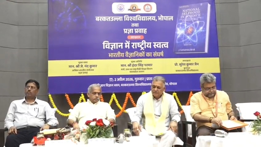 भोपाल। बरकतउल्ला विश्वविद्यालय में आज ‘विज्ञान में राष्ट्रीय स्वत्व : भारतीय वैज्ञानिकों का संघर्ष’ विषय पर एक प्रभावशाली व्याख्यान का आयोजन किया गया। यह कार्यक्रम प्रज्ञा प्रवाह के सहयोग से विश्वविद्यालय परिसर स्थित ज्ञान विज्ञान भवन में संपन्न हुआ।