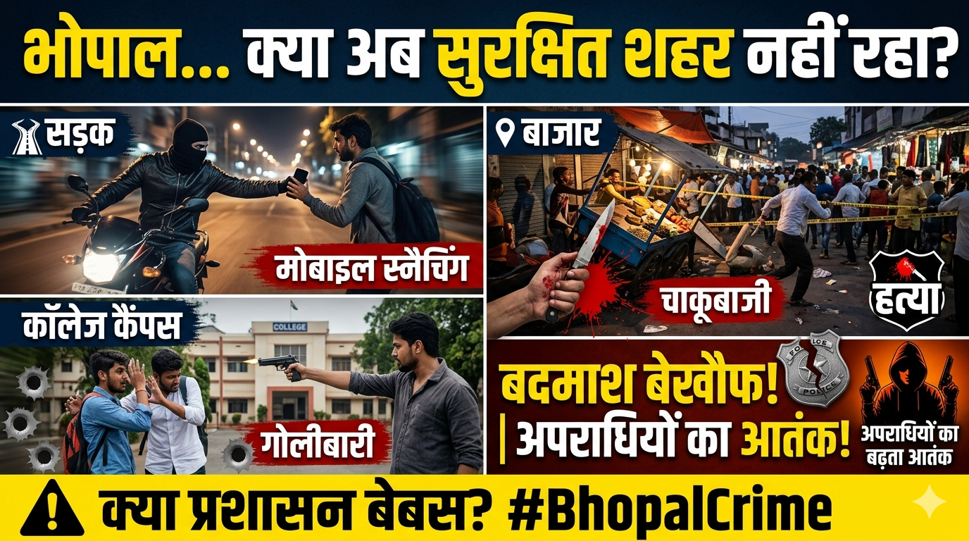 “भोपाल में बेलगाम बदमाश! सड़कों से कॉलेज तक गोलियां, लूट और स्नैचिंग—कौन है जिम्मेदार?”