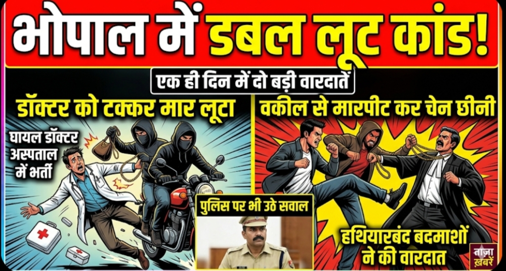 मध्य प्रदेश की राजधानी भोपाल में अपराधियों के हौसले इस कदर बुलंद हो चुके हैं कि अब VIP इलाके भी सुरक्षित नहीं रह गए हैं। एक ही दिन में लूट की दो बड़ी घटनाओं ने कानून व्यवस्था पर गंभीर सवाल खड़े कर दिए हैं।