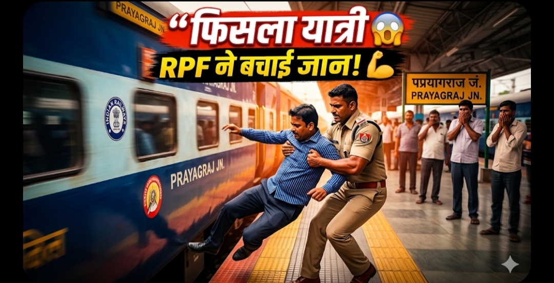 “चलती ट्रेन से फिसला यात्री, RPF जवान ने सेकंडों में बचाई जान – प्रयागराज जंक्शन का वायरल VIDEO”