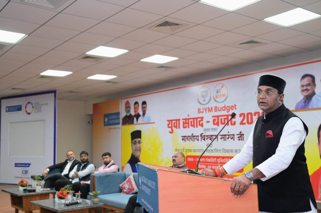 सहकारिता, खेल एवं युवा कल्याण मंत्री श्री विश्वास कैलाश सारंग ने जागरण लेकसिटी यूनिवर्सिटी, भोपाल में भारतीय जनता युवा मोर्चा द्वारा आयोजित “युवा संवाद–बजट 2026” कार्यक्रम में युवाओं से सीधा संवाद किया। कार्यक्रम का शुभारंभ दीप प्रज्ज्वलन के साथ हुआ, जिसमें मंत्री श्री सारंग ने केंद्रीय बजट 2026–27 के प्रमुख प्रावधानों, सरकार की दूरदृष्टि और विकसित भारत के संकल्प पर विस्तार से प्रकाश डाला।