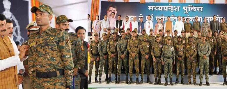 मुख्यमंत्री डॉ मोहन यादव नक्सली मुठभेड़ में अदम्य साहस दिखाने वाले 60 जवानों को क्रम से पूर्व पदोन्नति देने के लिए बालाघाट पुलिस लाइन में आयोजित कार्यक्रम में पहुंचे। मुख्यमंत्री डॉ यादव ने सलामी लेने के बाद अमर जवान ज्योति पर पुष्प चक्र अर्पित कर प्रदेश की शांति और सुरक्षा के लिए शहीद होने वाले जवानों को श्रद्धांजलि अर्पित की।कार्यक्रम में मुख्यमंत्री डॉ यादव को पुष्प गुच्छ भेंट कर उनका अभिवादन किया गया। इस अवसर पर पुलिस जवानों ने “वो बांके अलबेले- जो वापस न लौटे- इस मिट्टी के बेटे” गीत की भावपूर्ण प्रस्तुति दी। मुख्यमंत्री डॉ यादव ने “नक्सल संस्मरण” पुस्तक का विमोचन किया। कार्यक्रम में परिवहन एवं स्कूल शिक्षा मंत्री उदय प्रताप सिंह सांसद श्रीमती भारती पारधी ,पूर्व मंत्री गौरी शंकर बिसेन, एडीजी नक्सल विरोधी अभियान वेंकटेश्वर राव, पुलिस अधीक्षक बालाघाट आदित्य मिश्रा सहित विधायक गण जनप्रतिनिधि , पुलिस जवान तथा शहीद जवानों के परिजन उपस्थित रहे।