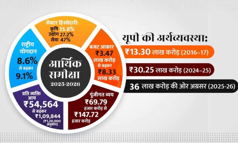 आर्थिक समीक्षा के अनुसार, राष्ट्रीय अर्थव्यवस्था में उत्तर प्रदेश का योगदान वर्ष 2016–17 के 8.6 प्रतिशत से बढ़कर वर्ष 2024–25 में 9.1 प्रतिशत तक पहुंच गया है। यह वृद्धि प्रदेश की आर्थिक मजबूती और राष्ट्रीय विकास में बढ़ती भूमिका को रेखांकित करती है।