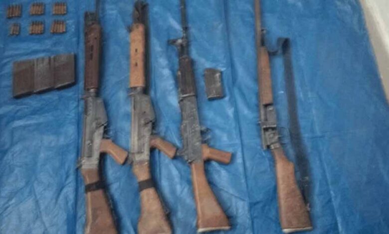 सघन सर्च अभियान के दौरान, पुलिस टीम ने पहाड़ी क्षेत्र से दो एसएलआर, एक इंसास राइफल, 12 बोर बंदूक, तीन एसएलआर मैगजीन, एक इंसास मैगजीन और 28 जिंदा कारतूस बरामद किए। पुलिस के अनुसार, ये हथियार डीजीएन डिवीजन द्वारा डंप किए गए थे।