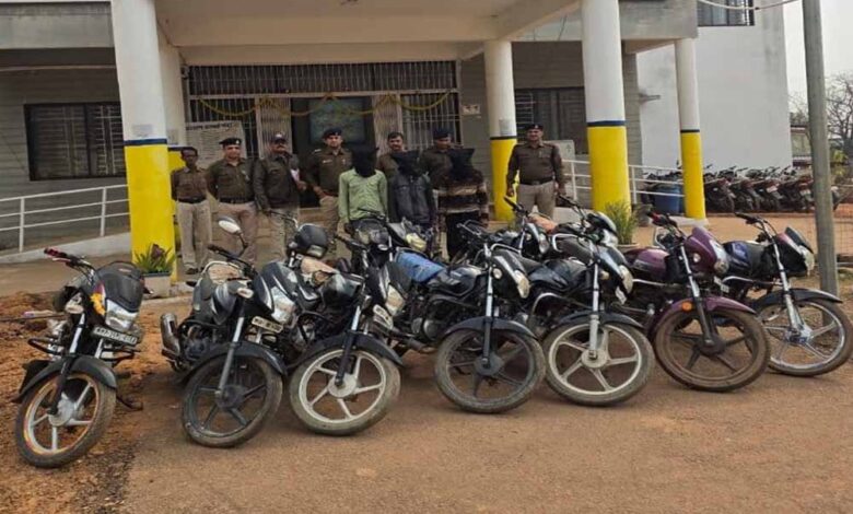 खरगोन पुलिस ने अंतरजिला मोटरसाइकिल चोर गिरोह का पर्दाफाश करते हुए 03 आरोपी एवं 01 विधि विरुद्ध बालक को अभिरक्षा में लेकर कुल 13 मोटरसाइकिलें (कीमत लगभग 6 लाख 50 हजार रुपए) जप्त कीं है। इसके अतिरिक्त एक अन्य कार्रवाई में शातिर वाहन चोर को गिरफ्तार कर उसके कब्जे से 06 मोटरसाइकिलें (कीमत लगभग 3 लाख रुपए) बरामद की गईं। इस प्रकार पुलिस ने इन दोनों कार्रवाइयों में कुल 19 मोटरसाइकिले बरामद की है।